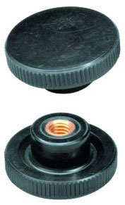 O knob de baquelite pode variar em diâmetros de 20, 25, 34 ou 46 milímetros, sua rosca pode ser interna ou externa, macho ou fêmea, com corpo de aço zincado ou de latão liga 360, possui diversas medidas de comprimento, na cor preta, com acabamento de superfície polida para garantir o bom manuseio e qualidade da peça, desta forma o knob de baquelite possui excelente isolamento elétrico e térmico, com boas características mecânicas, sendo resistente a impactos e pressão exercida pela máquina.